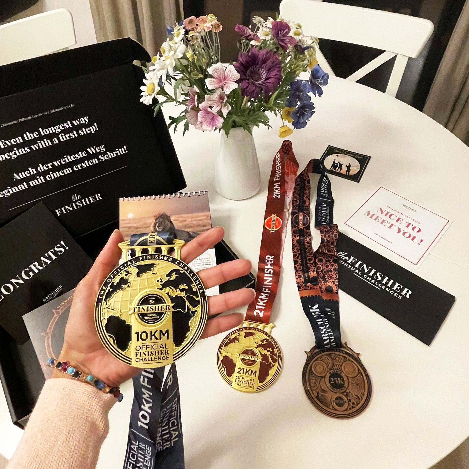 Und dann die Medaillen! Ich war regelrecht sprachlos, als ich sie ausgepackt habe. Sie sind absolut beeindruckend – groß, qualitativ hochwertig, wunderschön verarbeitet und mit einem wirklich edlen, professionellen und seriösen Design. Ich habe schon an einigen Challenges anderer Anbieter teilgenommen, aber solch stilvolle und wertige Medaillen habe ich bisher noch nirgends gesehen.