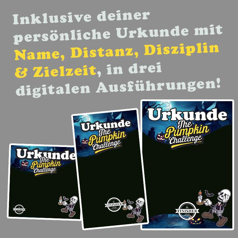 Mit unserer ersten Halloween Challenge im Cartoon-Stil könnt ihr eure Challenge im passenden Vibe zur Jahreszeit meistern, denn ab sofort ist Spooky-Season! Hinter uns sind Zombies, Geister und Vampire her... mit dem Gedanken laufen sich die Kilometer wie von selbst! #Hilfe Wie immer erhaltet ihr zur Challenge eine Startnummer, die ihr euch im eigenen FINISHER-Profil abrufen und ausdrucken könnt. Startet und beendet die Challenge im Halloween-Vibe, denn auch die drei digitalen Urkunden kommen im passenden Design. Ready for your Spooky-Run?