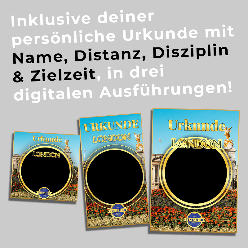 Dein Lauf im Königreich vorbei an den Sehenswürdigkeiten von London! London ist multikulturell und mit über 9 Millionen Einwohnern Anziehungspunkt vieler Nationalitäten. Wer war nicht schon in Gedanken dort und hat sich von dem Flair in London mit all seinen königlichen Eindrücken verzaubern lassen. Wahrhaft königlich ist die Hauptstadt Englands vor allem durch ihren eigenen Charme inmitten der bedeutendsten Kultur- und Handelszentren. Entlang der Themse oder im wunderschönen Hyde Park in London durch die alten Baumbestände und blühenden Rosengärten zu starten wie einst die Sportler der olympischen Sommerspiele 2012: wahrhaft königlich! Buche dir deine the virtual FINISHER -Challenge und atme den Duft des Königreichs! Wähle die Distanz deiner Wunschstrecke aus und genieße deine Auszeit mit großer Vorfreude auf unsere ausgefallene Medaille in der FINISHER-Box! Möchtest du 3,5 oder 10 km laufen, walken oder Fahrrad fahren? Bist du bereit für einen Halb-Marathon entlang der Themse mit 21 km Streckenlänge oder sogar für einen Marathon mit 42 km Streckenlänge. Wir haben deine Wunschstrecke in jeder Disziplin zur Auswahl bereit.